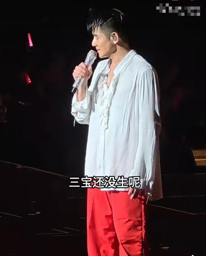 近日,郭富城在演唱会的聊天环节上,谈到有传闻说自己已经生了三胎,也收到了很多网友的祝福,他现场回应称:“谢谢大家的祝福,三宝还没生。”
