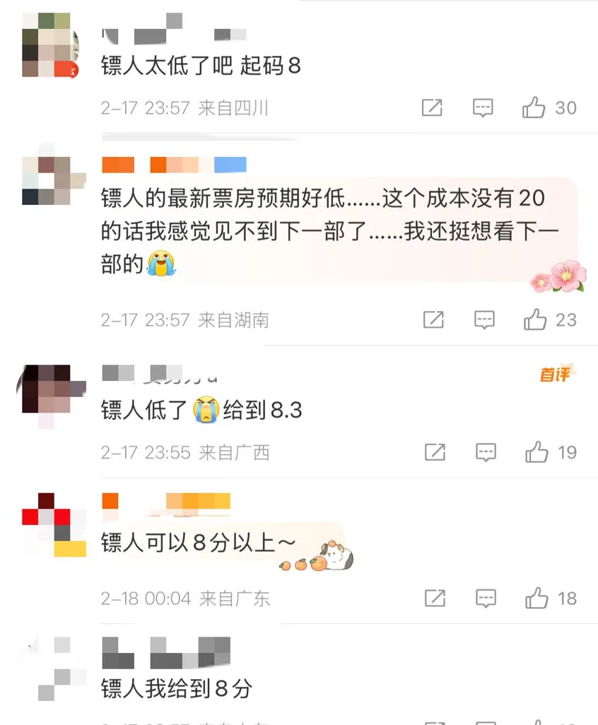 还有网友抱怨,自己所在城市的影院排给《镖人》的场次都不是黄金时间,并许愿到了春节档后半程,《镖人》的“待遇”能变好一点。
