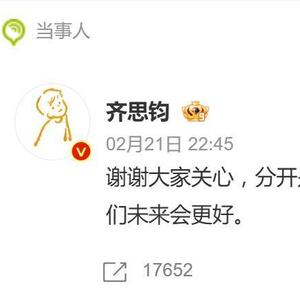 2月21日晚22:45,齐思钧在微博写下:“谢谢大家关心,分开是我们认真考虑后共同做出的决定。感谢曾经彼此的陪伴,祝福我们未来会更好。”言辞简洁,态度清晰。而这份声明,与刘梦章早前在个人视频中的坦诚剖白,形成了高度一致的“联合公告”。