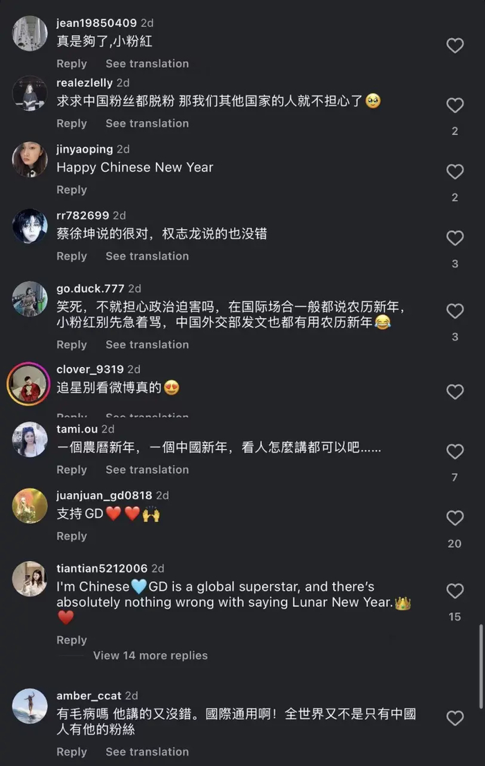 韩国爱豆权志龙可以说蹬鼻子上脸,他先是在迪拜音乐节上用“lunar new year”进行表述,以此来模糊“Chinese new year”的概念,当时权志龙的中国粉丝还在自欺欺人的为他进行洗白,但如今,权志龙再次点赞“lunar new year”的表述,这就没什么好说的了,权志龙就此彻底失去中国市场,很简单的一个道理,国家面前无偶像。