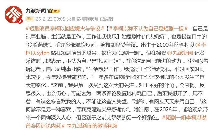 流量来得快,去得也快,李柯以对此看得很透。她坦言爆款红利是常态,演员的核心竞争力在于稳定的产出能力。所以,她许下了一个具体的心愿:在2026年,给观众带来一个同样深入人心、但完全区别于“太奶奶”的新角色。