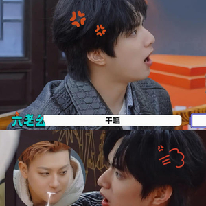 - 捏脸掐架:刘耀文猜错题被黄子韬念叨"让你不跟哥哥~",反手掐住对方脸颊,两人像幼儿园抢玩具般扭作一团。