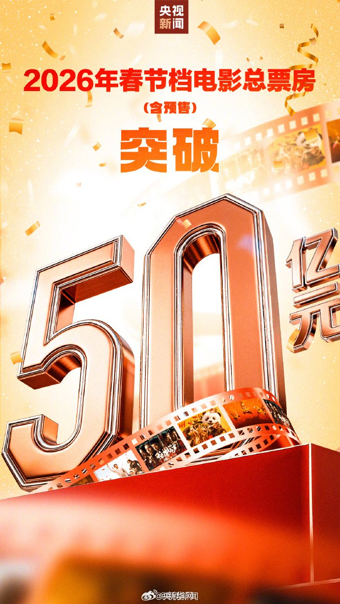 【#春节档电影票房破50亿#】 据网络平台数据,2026年春节档档期总票房(含预售)破50亿,《飞驰人生3》《惊蛰无声》《镖人》分列前三位。你#最喜欢的春节档电影#是哪部?来分享!