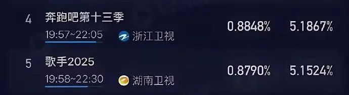 数据显示,《奔跑吧》5月31日收视率一度超越《歌手2025》,成为当晚卫视收视冠军;6月6日播出的“竖店风云”主题节目收视表现更是创下本季新高,酷云实时收视峰值达0.87%、平均值达0.74%,71城收视率破2.409%。