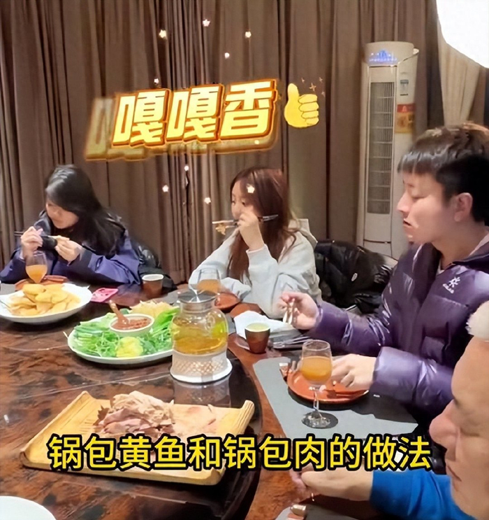 这场以“年年有余”为主题的家宴,主打原汁原味的东北鱼菜:酱焖鱼杂、麻辣鱼头、松花江鲤鱼……一大桌硬菜直接摆满,高端海鲜悉数到位,搭配寓意“节节高升”的豆沙馅大麻花、造型精致的玫瑰豆梨,肉眼可见的丰盛将东北过年的实在与热情拉满。席间,贾乃亮以全然“接地气”的姿态融入家庭聚会,被亲友称赞为“好爸爸、好儿子”。