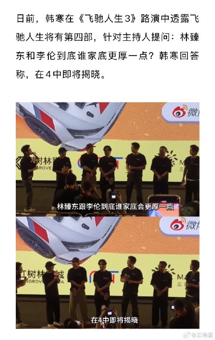 韩寒在《飞驰人生3》路演现场亲口引爆第四部计划,一句"林李家底之谜"的伏笔点燃全网期待。
