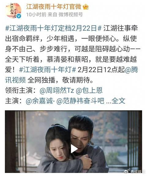 不过,说到底,每一部号称黑马的新武侠剧,都逃不过平台和资本的宿命轮回,《江湖夜雨十年灯》之所以被力捧,一方面是原著关心则乱自带口碑保障,一方面侣皓吉吉导演镜头审美在线,再加上腾讯视频这几年猛砸资源,把新生代和老戏骨混搭组合,全力打造爆款,如果真的火出圈,那只是顺势而为,如果翻车,那就是娱乐圈常态,谁还记得去年那些被吹爆后无人问津的所谓“年度大作”呢。
