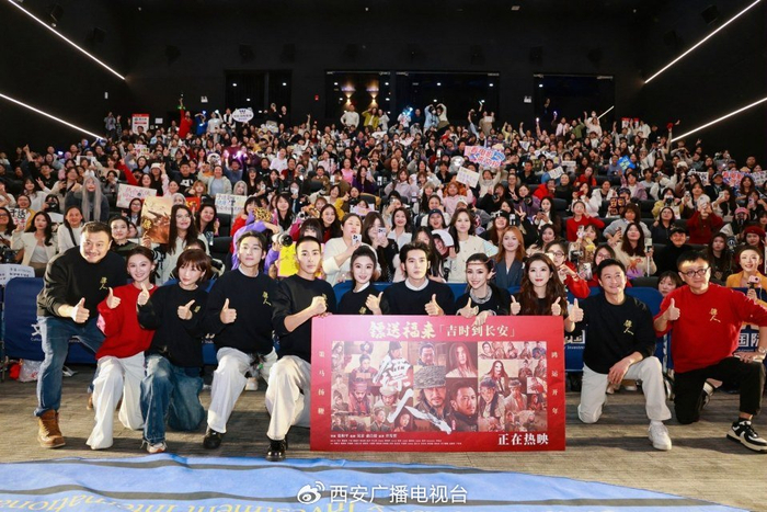 映后互动环节,主创们逐一解读 “长安对角色的特殊意义”。吴京坦言:““虽然谛听没有能够一起回到长安,但是多了一群镖友们来到长安,长安对于刀马来讲,既是过去又是新的开始。”于适笑称要在长安 “干件大事”,更向观众喊话:“我们能不能成,全靠各位‘护镖大队’的支持!”李云霄的解读则充满巧思:“燕子娘回长安可能得做做美甲、护个肤、唱唱卡拉OK,和护镖小队一起感受这个太平盛世!”现场氛围更是被主创们的即兴表演推向高潮——众人还原“推开长安大门”后的趣味小剧场:刀马归乡时的百感交集,竖本欲“佛挡杀佛”,却秒变“没想到陕西人民这么好客,压根没人挡我呀!”逗得全场捧腹大笑。从戏里的江湖豪情到戏外的欢声笑语,这场“长安之约”让观众用热烈的掌声与笑声,稳稳接住了这趟热血镖途。值得一提的是,著名编剧芦苇也现身观众席,分享二刷影片的激动心情:“本来以为中国武侠片已走到尽头,但这部电影让我看到了希望。它不仅在攀登高峰,更开创了武侠电影的新篇章。”他盛赞影片从造型、服装到阵容的匠心打磨:“虽然我干电影51年了,但是依然非常兴奋!”