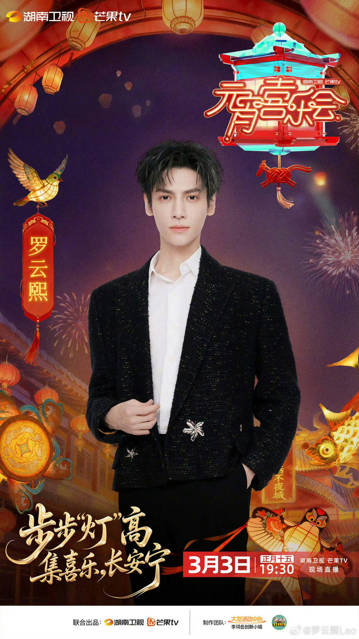 罗云熙加盟湖南卫视元宵喜乐会 今天也没剧本呢 02.2411:42 关注 #罗云熙湖南卫视元宵喜乐会官宣##罗云熙官宣湖南卫视元宵喜乐会#罗云熙湖南卫视元宵喜乐会正式加盟,舞台王者再营业✨ 共赴这场元宵视听盛宴!期待舞台~#湖南卫视元宵喜乐会#