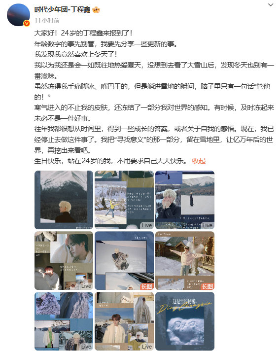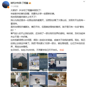 【#丁程鑫看雪山后喜欢上冬天# 】#丁程鑫24岁不要求天天快乐#2月24日,@时代少年团-丁程鑫 在24岁生日当天发文,并在文中谈到自己去看了雪山后,喜欢上了冬天↓