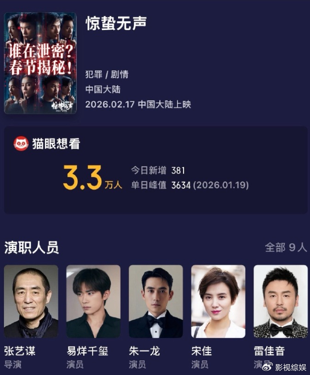 这次张艺谋新片《惊蛰无声》票房被韩寒的《飞驰人生3》碾压,口碑远不如吴京的《镖人》,双扑街既有题材原因,也有演员不给力或者没法爆发的原因,效果远不如《满江红》《第二十条》,当然也不代表赵丽颖票房号召力就比刘诗诗杨幂强多大,主要还是与题材及角色契合度及作品整体爆发力有关。