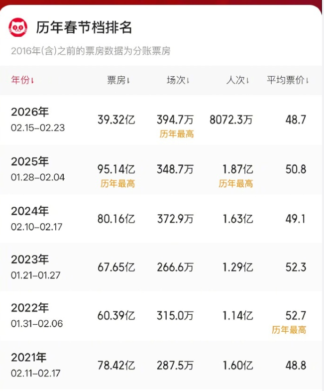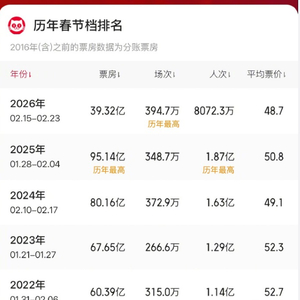 最近这几年春节档起起伏伏,即便电影整体质量不算多高,票房也不算很差,春节黄金周的优势就在这里,只要不太差劲,都能分得一杯羹。不过也有欺负变化,只是没想到今年春节档,会成为近年来的新低,与去年相比差距悬殊。当然,整天电影质量和去年差不多,都不算高,只是去年有《哪吒2》异军突起拉高了数据。