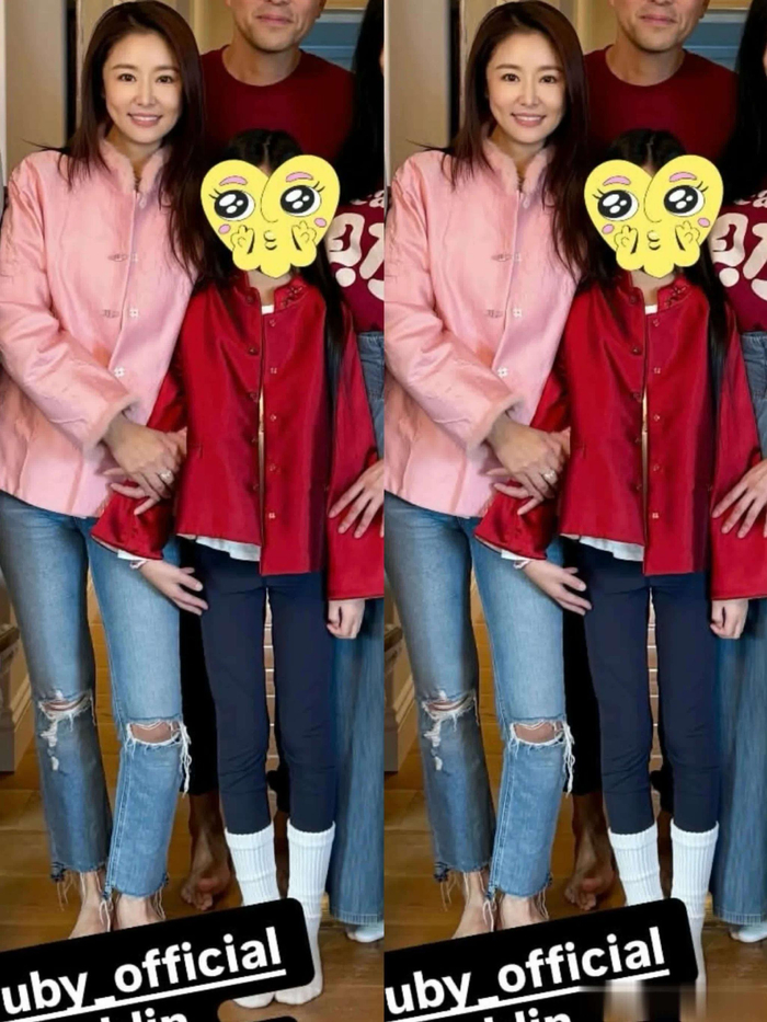 林心如母女新年聚会,9岁小海豚罕见出镜,高挑长腿超抢镜