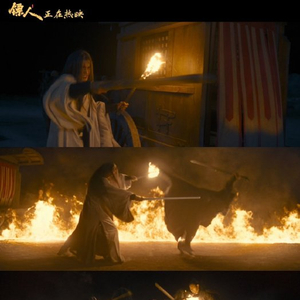 影片拒绝绿幕与虚拟特效,坚持新疆大漠实景拍摄。演员在55℃高温沙暴中搏命,兵器碰撞的火花、沙暴裹挟的窒息感、马背缠斗的颠簸,均源于真实体验。吴京与于适的火场对决以真火包围,高温中完成高难度动作,汗渍与灼痕成为镜头最原始的注解。