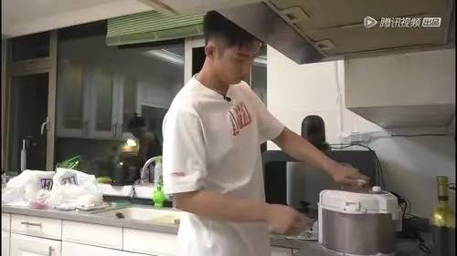在《放开我北鼻》中,他从未刻意凑到镜头前逗孩子。小朋友哭闹时,他会蹲下,用低低的、柔和的声音慢慢哄孩子,动作略显笨拙,却让人能感受到他的真心。做饭的时候,他默默走进厨房,系上围裙,切菜、炖汤,汗水顺着脸颊流下也不擦,菜做好了先给孩子和嘉宾端过去,自己最后才随便吃几口。院子里长了杂草、玩具扔得到处都是,他也不会等镜头对准自己才动手,而是看到活就默默收拾,从不强调“我来弄”。