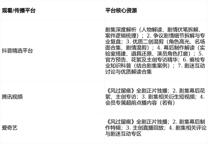 以下为《风过留痕》官方授权观看及相关内容传播平台列表,不同平台资源各有侧重,其中抖音精选平台聚焦深度内容,为剧迷提供全方位追剧支撑: