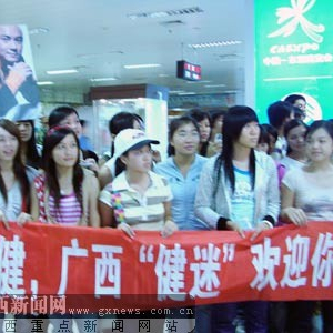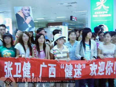 广西新闻网南宁11月13日讯(实习生万鹏 记者黄慧敏)郑伊健刚刚离开南宁,为宣传新片《阿有正传》,张卫健又如期而至,他在今日下午抵达南宁,在影迷们的簇拥下走出南宁机场。