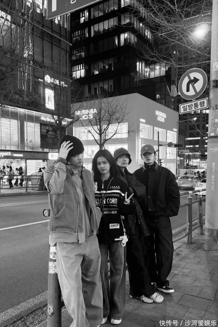 更让人觉得稀罕的是,这次出游可不是什么商业活动,完全是他们四个人的“私人定制”。全程没有一个工作人员跟着,纯靠自己配合默契。你发现没?陈鹤一自动变身“行李车司机”,推着大伙儿的行李任劳任怨;梁永棋则扛起了“摄影大师”的重任,负责抓拍美美的花絮;曾舜晞像个靠谱的导游,拿着手机规划路线;而白鹿更是凭着一口流利的韩语,成了团队的眼睛和耳朵,负责跟当地人交流,还顺便记录了整个旅程 。