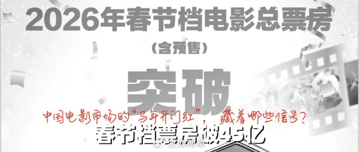 这45亿从来不止是一个冰冷的数字,它是《飞驰人生3》领跑下的“一超多强”格局,是394.7万场次刷新的影史纪录,是平均票价创下近五年新低的惠民让利,更是“票根经济”撬动文旅消费的生动注脚,每一组数据背后,都藏着中国电影市场正在发生的深刻变革,彰显着马年伊始中国电影的强劲韧性。
