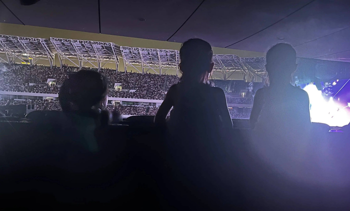 搜狐娱乐讯 2日,谢娜在社交平台上发文称自己带着三个女儿去看了张杰的演唱会,并晒出孩子们在演唱会的背影照。跳跳、俏俏和小咘芽聚精会神地看着台上爸爸的演出,画面中三颗小小的脑袋超可爱!