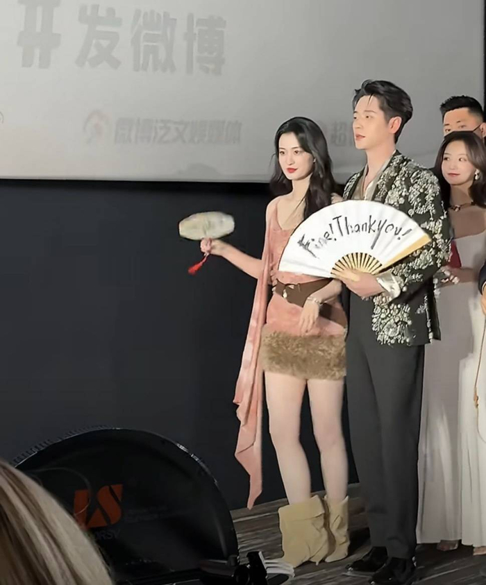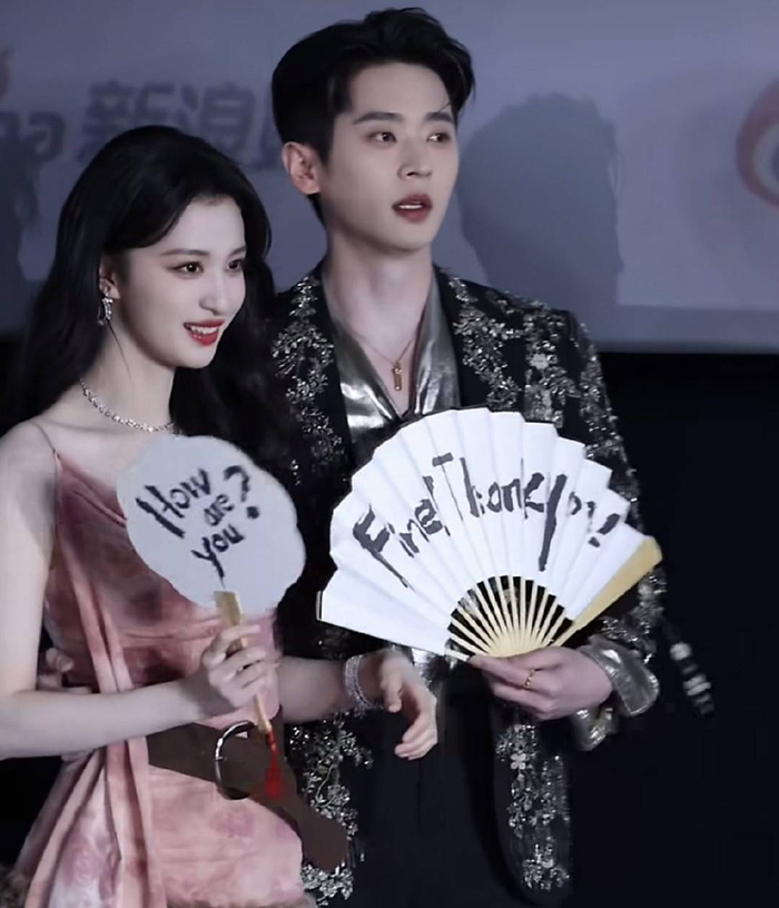 活动现场,二人首先复刻了剧中“暴君搂妖妃出场”的经典桥段。王楚然身着吊带短裙,眼尾轻挑间媚态流转;丞磊一身黑衣,冷峻中透着掌控欲。当王楚然步伐稍快偏离动线时,丞磊迅疾伸手将其揽回腰侧,动作干脆利落却掌心虚扶,尽显绅士分寸。镜头特写捕捉到他耳廓泛红、眼神飘忽的羞赧反应,与剧中阴鸷暴君形象形成极致反差,被网友称为“性张力与纯情感并存的教科书级演绎”。