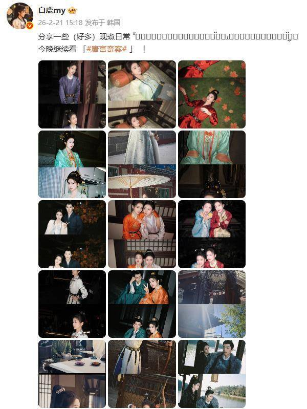 除了分享日常生活,白鹿在宣传新剧《唐宫奇案》时同样不遗余力。她在剧中饰演的李佩仪,聪慧且果敢,探案的剧情紧张又充满张力,角色塑造层次感十足。剧集开播后,热度一路飙升。白鹿不仅带着剧组成员亮相红毯,还精心定制剧中的角色周边产品,通过日常动态和追剧安利等方式为剧集造势,堪称剧宣天花板。她的一举一动,都在为这部剧加分,也让更多的观众爱上了这个角色,爱上了她自己。