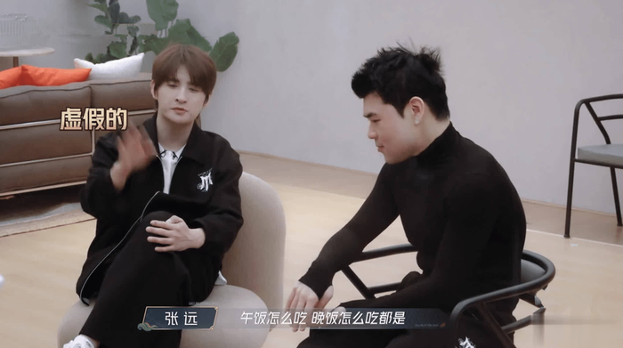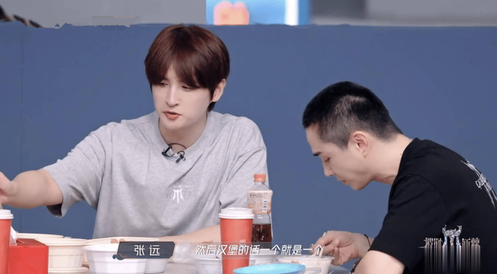 李承铉也劝他吃点东西,少吃碳水应该可以。这一说张远身体很实诚,直接伸出“最饿”的双手,接过筷子,一口接一口地吃起来,还说自己吃菜不知不觉就会吃很多,要是吃汉堡的话一个就是一个。