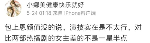 虽然她长了一张标准的甜妹脸,适合演女主,但是在辨识度高的同时,演技却不够灵动,演戏没什么情绪,下半张肌肉不用力,总有一些呆滞感。