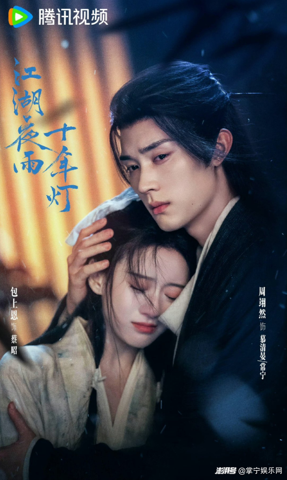《江湖夜雨十年灯》围绕魔教少主慕清晏(周翊然 饰)与佛系女侠蔡昭(包上恩 饰)展开。两人因江湖纷争相遇,从立场相悖、互相试探,到历经风雨、彼此守护,在揭开武林秘辛的同时,谱写一段甜虐交织、刻骨铭心的江湖恋歌。剧集融合武侠侠义、权谋悬疑与细腻情感,节奏紧凑、画面唯美,兼顾古风意境与现代审美,打造沉浸式江湖爱情叙事。