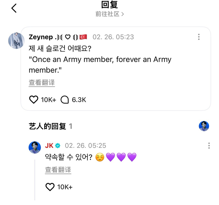 田柾国发文与粉丝约定终身为阿米