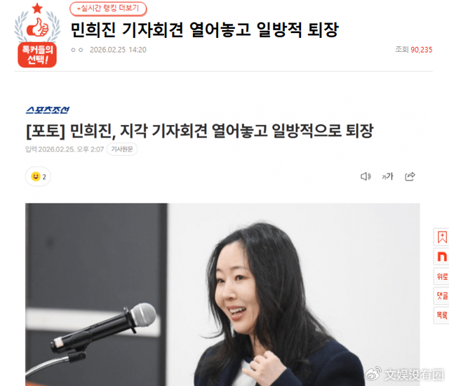 Hybe又开黑了?韩网出现大量黑帖子:闵熙珍开记者会却单方面离场