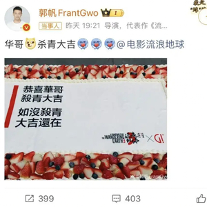 1月9日晚,郭帆导演在社交平台上晒蛋糕,祝贺刘德华在《流浪地球3》的戏份杀青,杀青蛋糕上的配文是:“恭喜华哥,杀青大吉,如没杀青,大吉还在。”