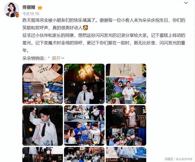 社交媒体发布后,相关内容传播广泛。董璇的动态包括对朵朵成长的描述,以及五人合影的展示。合影构成清晰:陈思诚居中,佟丽娅和董璇分别在侧,孩子们在前方。佟丽娅的分享突出派对的集体性,强调小朋友们的参与。董璇转发并补充个人视角,连接过去与现在。