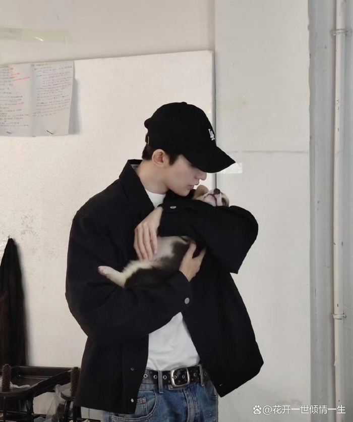 但他抱着小狗时无比温柔和体贴的样子,可以看出来他打扮得时尚前卫,内心却纯真的一塌糊涂。
