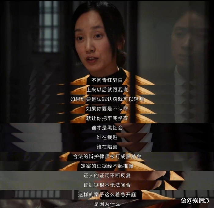 在剧中,张文菁是万海的辩护律师,也是剧中万海案的关键人物之一,被诬陷构罪入狱。从万海庭审现场的起身高喊到面对检察官时的20秒连环追问,不仅台词多、语速快,而且咬字也清楚,情感又饱满,将角色的果敢又不失强势的一面刻画得入木三分。
