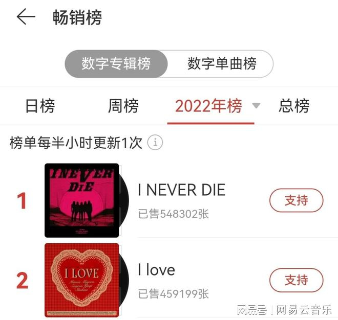 11月15日,当红女团(G)I-DLE再次达成了里程碑,其年初发行的正规一辑《INEVER DIE》及10月发布的迷你五辑《Ilove》双专在网易云音乐平台总销量突破100万张,累计收听次数突破1.5亿,包揽云音乐数字专辑畅销榜2022年年榜双TOP。再次用好音乐证明了自己的实力和在乐迷中的地位。