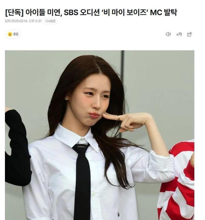 14日,据韩媒报道,i-dle美延被选为男团选秀MC。据首尔体育14日报道,美延将担任SBS综艺节目《B:MY BOYZ》的MC。