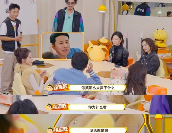徐志胜在节目中以“贴脸开大”的近距离互动方式,突然对宋妍霏调侃道:“你还是笑一笑吧,臭脸”,随后还即兴发挥“随地大小演”(即兴表演),围绕宋妍霏的表情、动作展开一连串幽默吐槽,如“你为什么要把包放桌子上”“你为什么看”等。这种无剧本的临场反应瞬间点燃现场氛围,嘉宾和观众笑到失控。