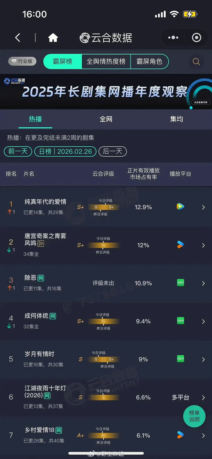 #陈飞宇孙千新剧云合登顶##陈飞宇孙千纯真年代的爱情云合登顶#