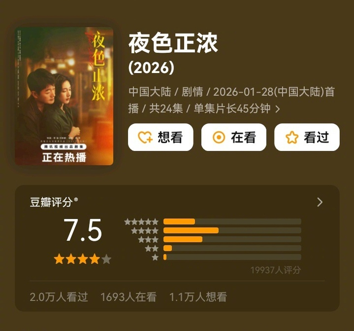 江疏影、佟大为《夜色正浓》7.5分