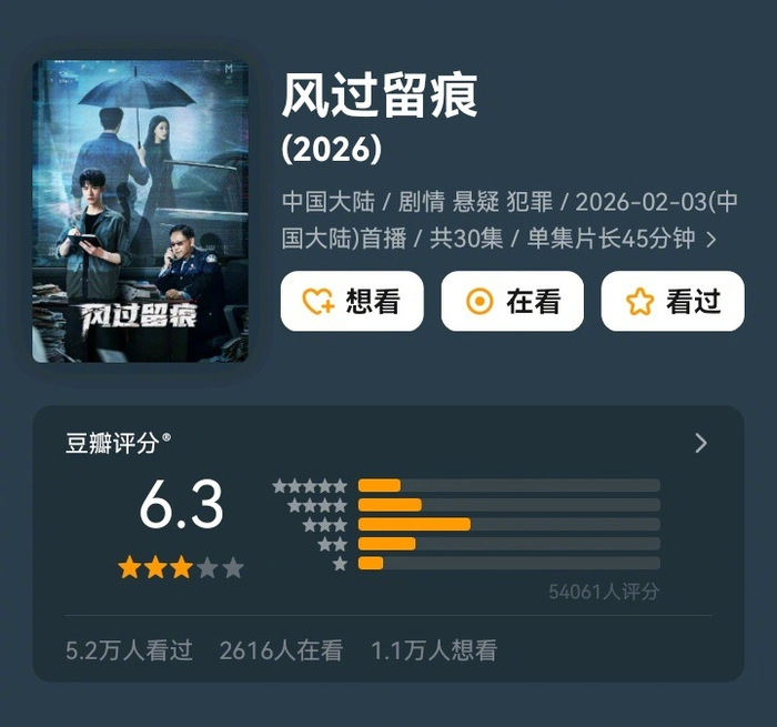 龚俊、姜武《风过留痕》6.3分