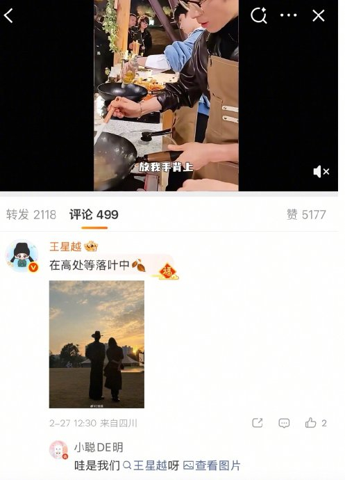 节目未播先热之际,高叶主动发博称赞王星越厨艺精湛,而王星越火速晒出二人合照回应,配文"在高处等落叶"巧妙呼应彼此姓名,被网友破译为"高叶×王星越"的藏头密码。这种有来有往的社交互动既显真诚又充满文艺感,为节目中的化学反应埋下伏笔。