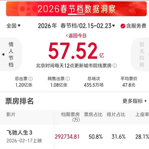 57.52亿!2026年春节档电影总票房同比下滑近四成