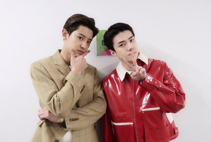 组图:EXO吴世勋朴灿烈同框合照曝光 做相同手势画面养眼