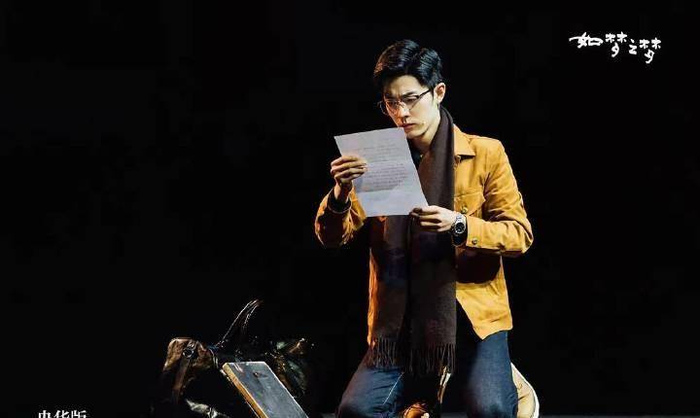 在江红的独白声中,五号缓缓地打开信纸,如果你坐的座位离舞台距离远且不借助于望远镜仔细观察的话,你只会看到五号侧身跪地的佝偻着的身影,而不会看到他脸上两行清泪滚落,像是断了线的珠子一般落在了围巾上,砸在地板上,也不会注意到他的手、嘴唇、睫毛、脸上的肌肉和汗毛、脖子上的青筋甚至连佝偻着的背影都在微微地颤抖。