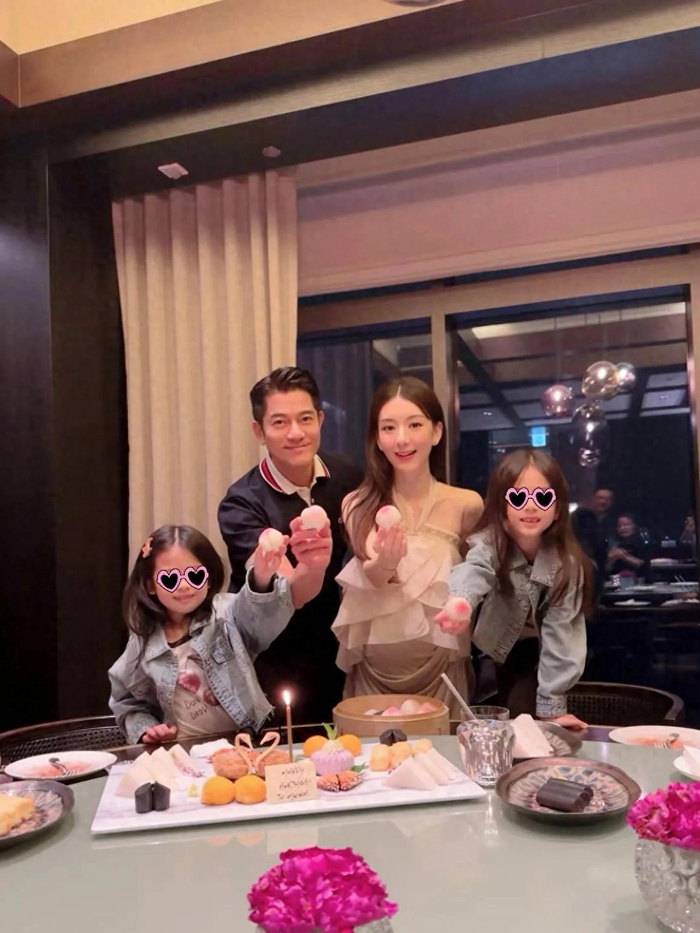 郭富城为方媛庆38岁生日,一家四口同框超温馨,三胎孕肚抢镜!