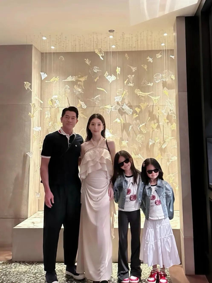 方媛当天状态极佳,身着一袭简约而不失优雅的宽松长裙,恰到好处地衬托出她温婉的气质,尽管孕肚明显,但她四肢依旧纤细,皮肤状态也相当不错,脸上洋溢着幸福的笑容,整个人看起来少女感十足。郭富城则穿着休闲又不失稳重的服装,发型利落,站在方媛身边,尽显成熟魅力,虽然他与方媛相差22岁,但岁月似乎对他格外留情,完全看不出真实年龄。两个女儿也打扮得十分可爱,穿着同款不同色的小裙子,像两只翩翩起舞的花蝴蝶,一个乖巧地依偎在方媛身边,一个调皮地在郭富城怀里嬉笑,姐妹俩的高颜值遗传了父母的优秀基因,未来可期。