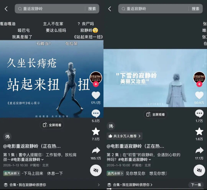 惊悚类引进片《重返寂静岭》大量释出三角头、无脸护士等经典游戏符号,唤醒老玩家青春记忆,同时以反套路视频破圈——把危险前的下雪画面剪得唯美治愈,或制作“久坐扭一扭”温馨提示,引发网友玩梗和二次创作,实现从核心粉丝到泛娱乐群体的曝光。宣传的另一面是精准触达核心受众