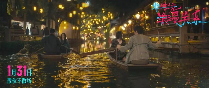 爱情喜剧《非传统浪漫关系》在南京、苏州、周庄等地取景,线上与地方文旅官号合作打造#跟着非传统浪漫关系打卡#话题,线下将周庄转化为沉浸式打卡地,推出“周庄请你看电影”活动,实现“电影场景-旅游目的地-观众记忆点”的深度绑定,有效拉动地域票房。