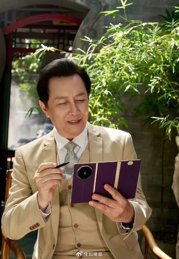 73岁国家一级演员唐国强身着长衫、手持剧本亮相,即兴赋诗四句:“横店春来早,竖屏新戏开拍了,众人拾柴火焰高,早日杀青传捷报。”